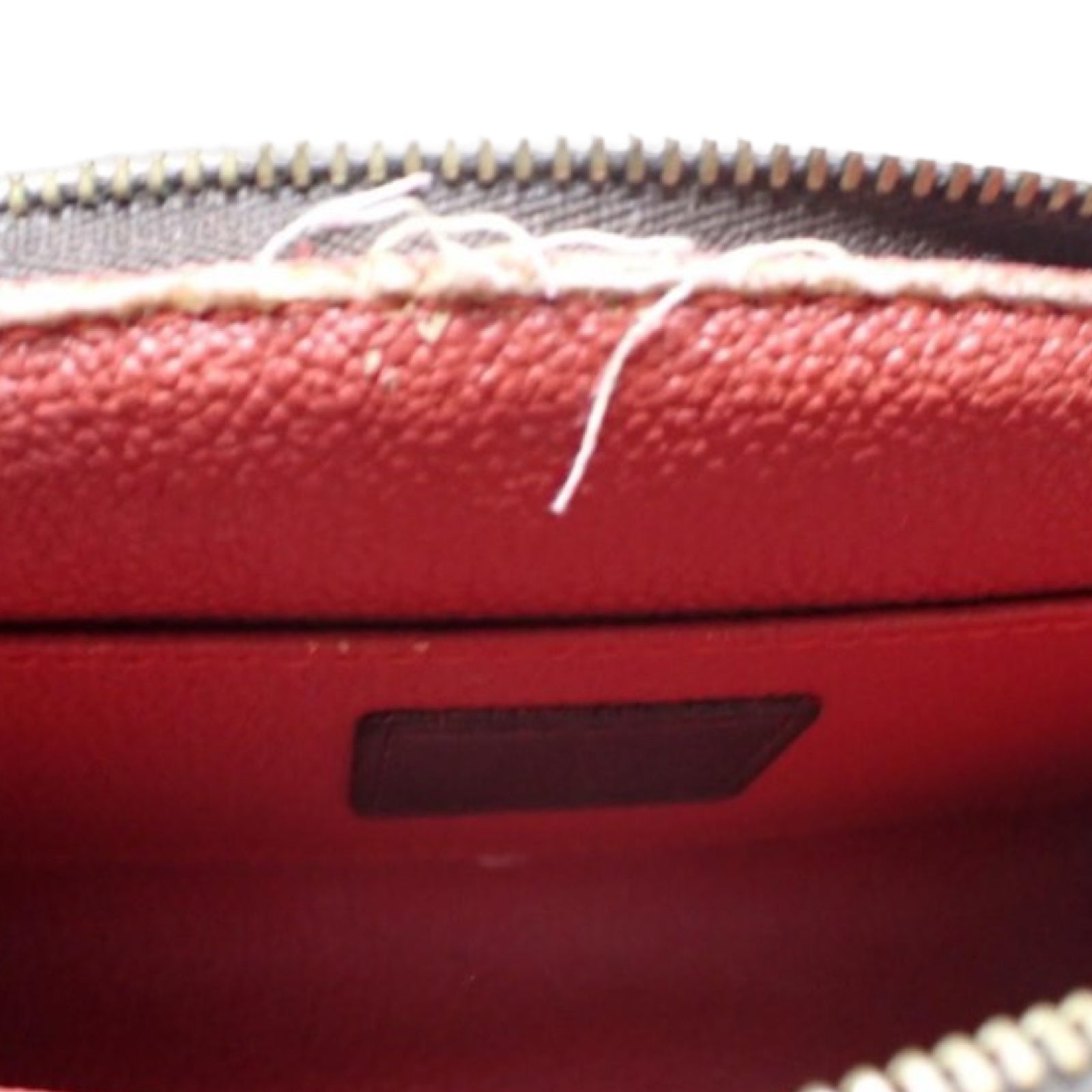Canvas is in very good condition with mild corner rubbing. Interior is clean and has some strings above the zipper line.