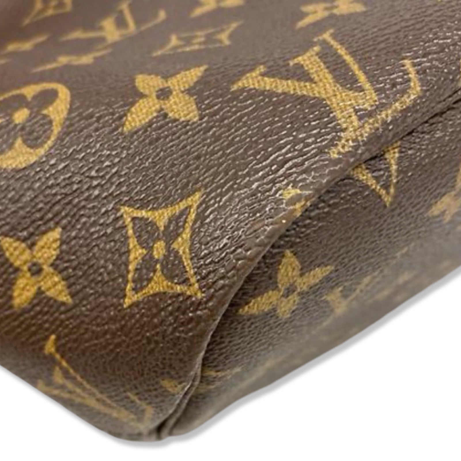 Monogram canvas is in very good condition with no major signs of wear. Leather trim shows minor signs of rubbing, as shown in photos. Interior is clean. Hardware is shiny.